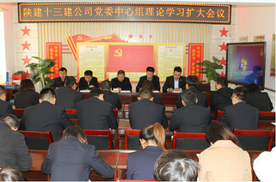 11月5日,陜建十三建公司在吳起縣周灣鎮(zhèn)小口則村村委會(huì)會(huì)議室召開(kāi)黨委中心組理論學(xué)習(xí)(擴(kuò)大)會(huì)議。公司領(lǐng)導(dǎo)班子、各部門(mén)負(fù)責(zé)人以及機(jī)關(guān)全體黨員參加會(huì)議。會(huì)議由公司黨委書(shū)記、董事長(zhǎng)卜國(guó)平同志主持。
