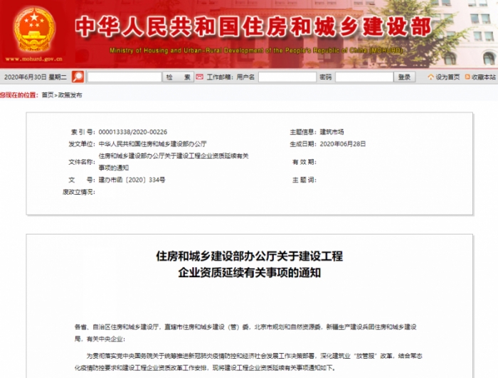 2020年7月1日前,住建部已受理的資質(zhì)延續(xù)申請事項,不再進(jìn)行審批,相關(guān)資質(zhì)證書有效期延期至2021年12月31日。