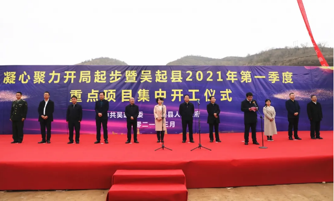 開工儀式上,吳起縣委書記嚴(yán)曉慧作了動(dòng)員講話并宣布吳起縣2021年第一季度重點(diǎn)項(xiàng)目正式開工。嚴(yán)書記在致辭中指出,吳起縣將始終秉承“項(xiàng)目為王,招商第一”的理念,全力營(yíng)造有利于項(xiàng)目建設(shè)的優(yōu)質(zhì)環(huán)境,以高質(zhì)量項(xiàng)目推動(dòng)高質(zhì)量發(fā)展,希望各項(xiàng)目建設(shè)單位倒排工期,掛圖作戰(zhàn),高標(biāo)準(zhǔn)建設(shè),高效率推進(jìn),把每個(gè)項(xiàng)目都建成精品工程。