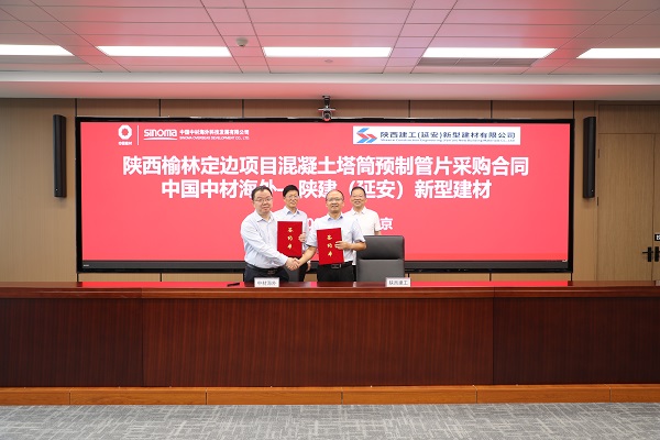 會(huì)上,中國(guó)中材海外科技發(fā)展有限公司黨委副書記、總經(jīng)理祝林和,集團(tuán)總工程師、新型建材公司董事長(zhǎng)王弘起代表雙方簽訂了陜西榆林定邊項(xiàng)目混凝土塔筒預(yù)制管片采購(gòu)合同。