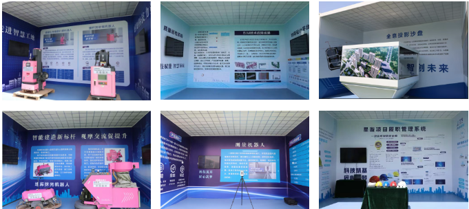 該項目緊扣智能化、數(shù)字化主題,以“設(shè)計數(shù)字化、施工智能化、管理信息化”為主線,分為“數(shù)字平臺區(qū)、智能機(jī)器人區(qū)、智能設(shè)備區(qū)、四新技術(shù)應(yīng)用區(qū)、展板區(qū)”五大展區(qū),分別呈現(xiàn)了質(zhì)量巡檢系統(tǒng)、BIM技術(shù)過程管理、基坑監(jiān)測系統(tǒng)、地面整平機(jī)器人、地庫抹光機(jī)器人、螺桿洞封堵機(jī)器人、混凝土內(nèi)墻面打磨機(jī)器人、建筑清掃機(jī)器人、地坪研磨機(jī)器人、ALC墻板安裝機(jī)器人等,展示了一系列施工相關(guān)的智能建造技術(shù)和智能設(shè)備,讓觀摩人員贊嘆不已、紛紛點贊。